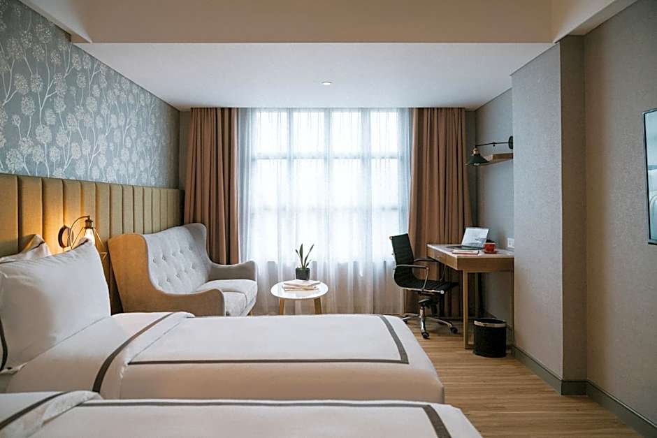 Providing free toiletries and bathrobes, this twin room includes a private bathroom with a walk-in shower, a hairdryer and slippers. The twin room's kitchenette, which features a refrigerator and a microwave, is available for cooking and storing food. The air-conditioned twin room provides a flat-screen TV with cable channels, soundproof walls, a tea and coffee maker, a seating area as well as city views. The unit offers 2 beds.